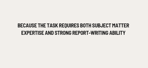 Because the task requires both subject matter expertise and strong report-writing ability, many students struggle to balance the requirements with other academic and personal commitments.