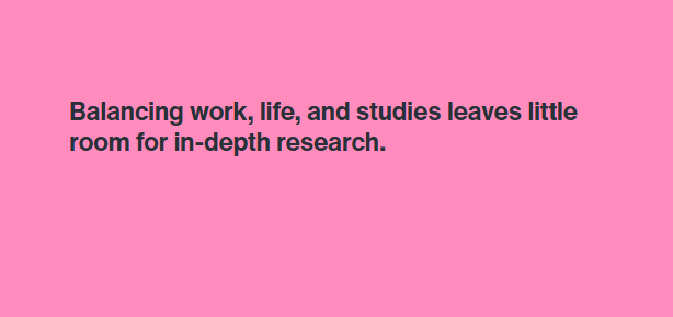 Time Constraints: Balancing work, life, and studies leaves little room for in-depth research.